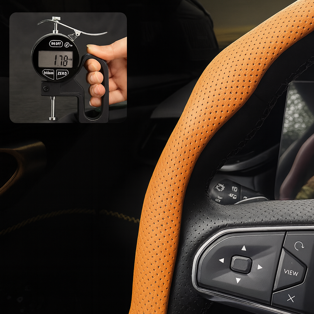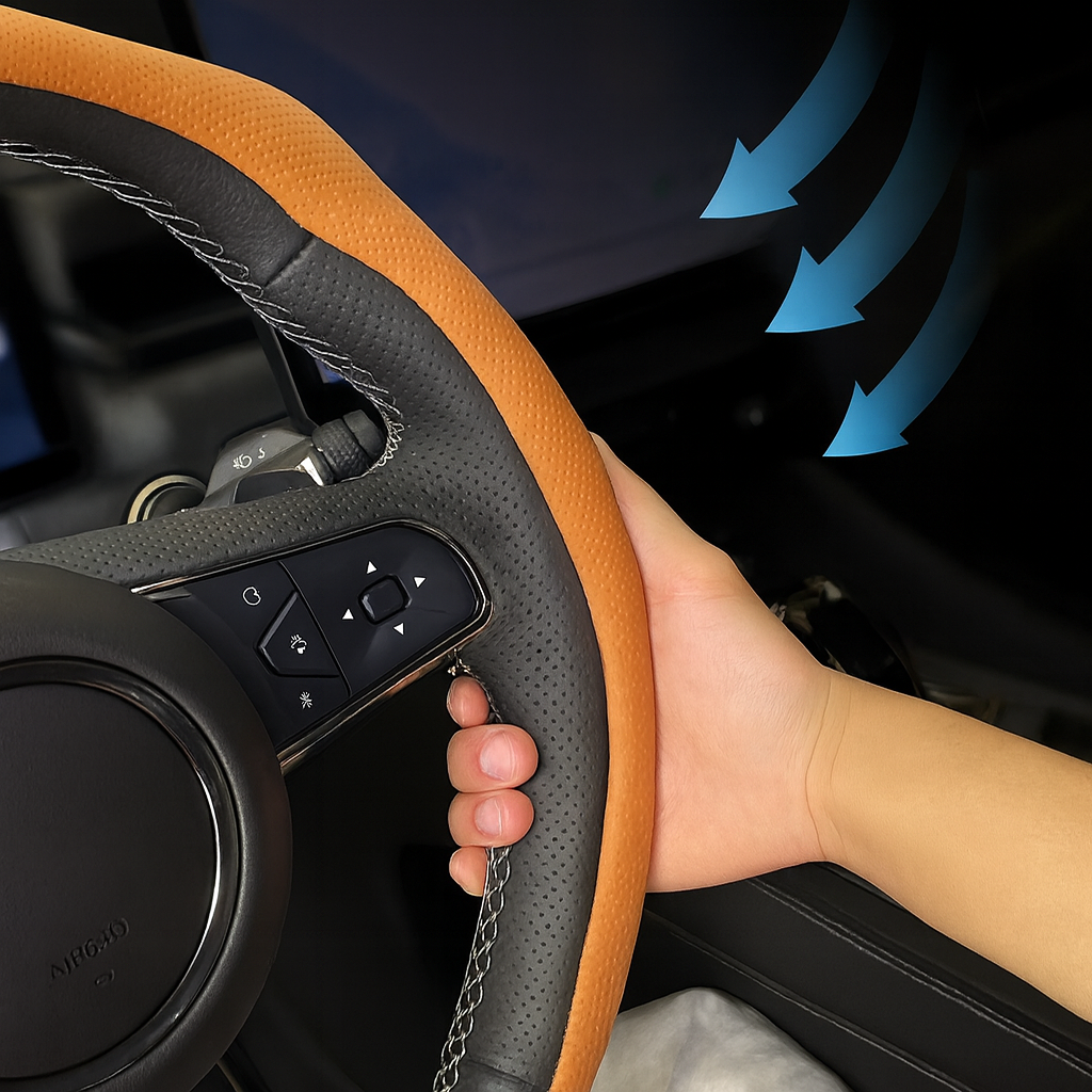 Our ultrathin steering wheel cover offers a sleek fit that feels natural in your hands—enhancing comfort without adding bulk